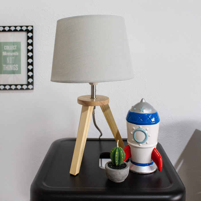 FORLIGHT NUTS - (2 uds) Lámpara de Mesa de Estilo Nórdico. Para Mesita de Noche de Madera Natural y Textil de Color Gris. E27