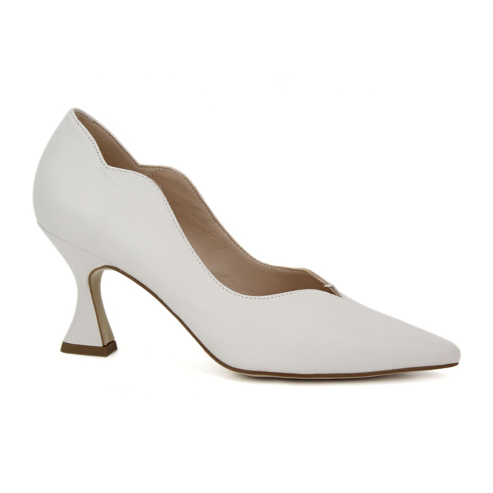 Zapato de salón de piel color negro con flor y tacón de 7 cm