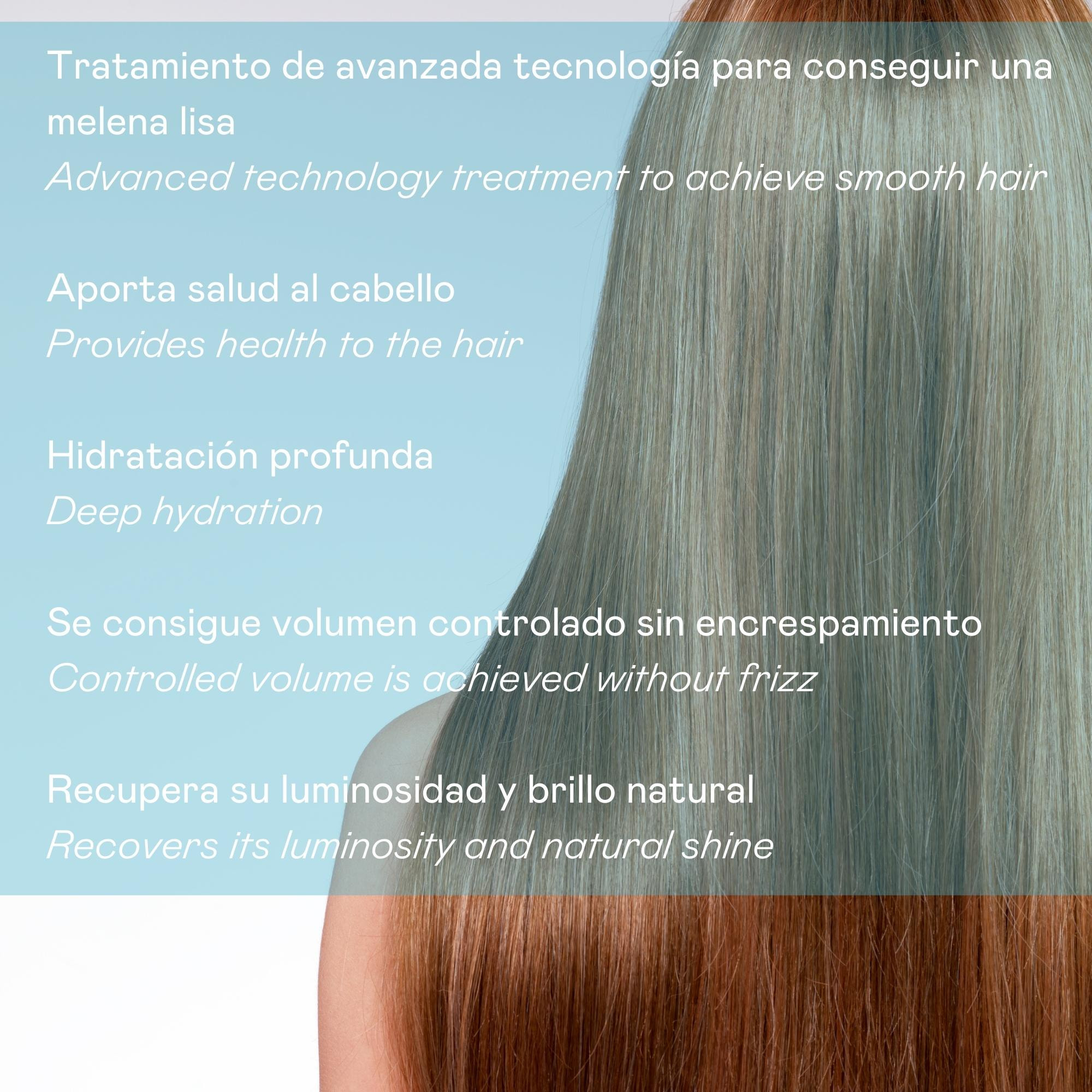 El Kit incluye 4 productos: champú preparador (2 uds), tratamiento alisador y mascarilla que mantiene y aumenta la duración del tratamiento.