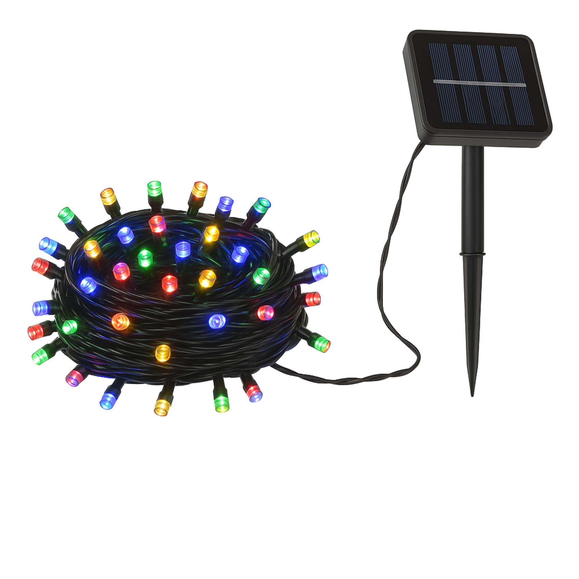 Decora tus espacios con esta cadena de luces LED solar con 400 bombillas multicolor, con un cable conductor de 4 metros de longitud y espacio de 6 cm entre cada LED._x000D_