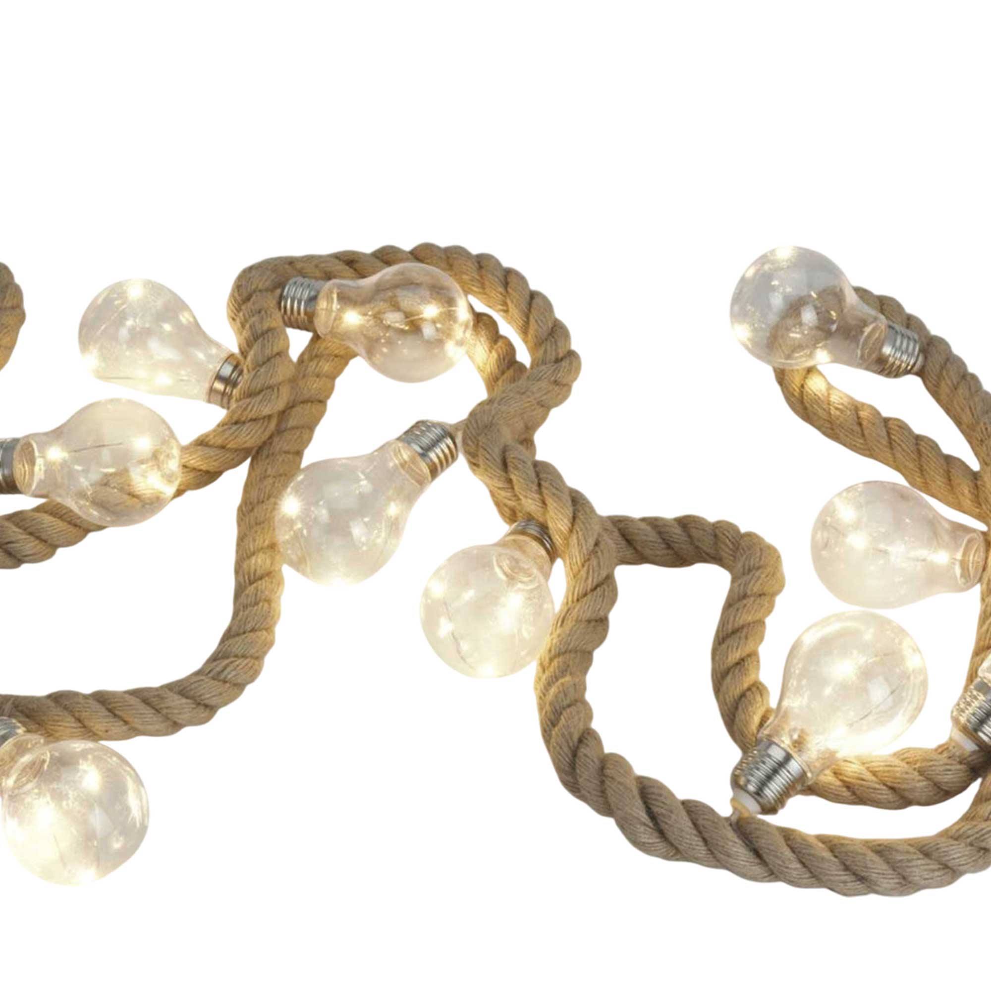 Renueva la decoración de tu hogar con esta impresionante lámpara de cuerda con 10 bombillas LED, cada una con 3 micro LED de color blanco cálido, ofreciendo un total de 30 LED que brindarán una iluminación acogedora._x000D_
