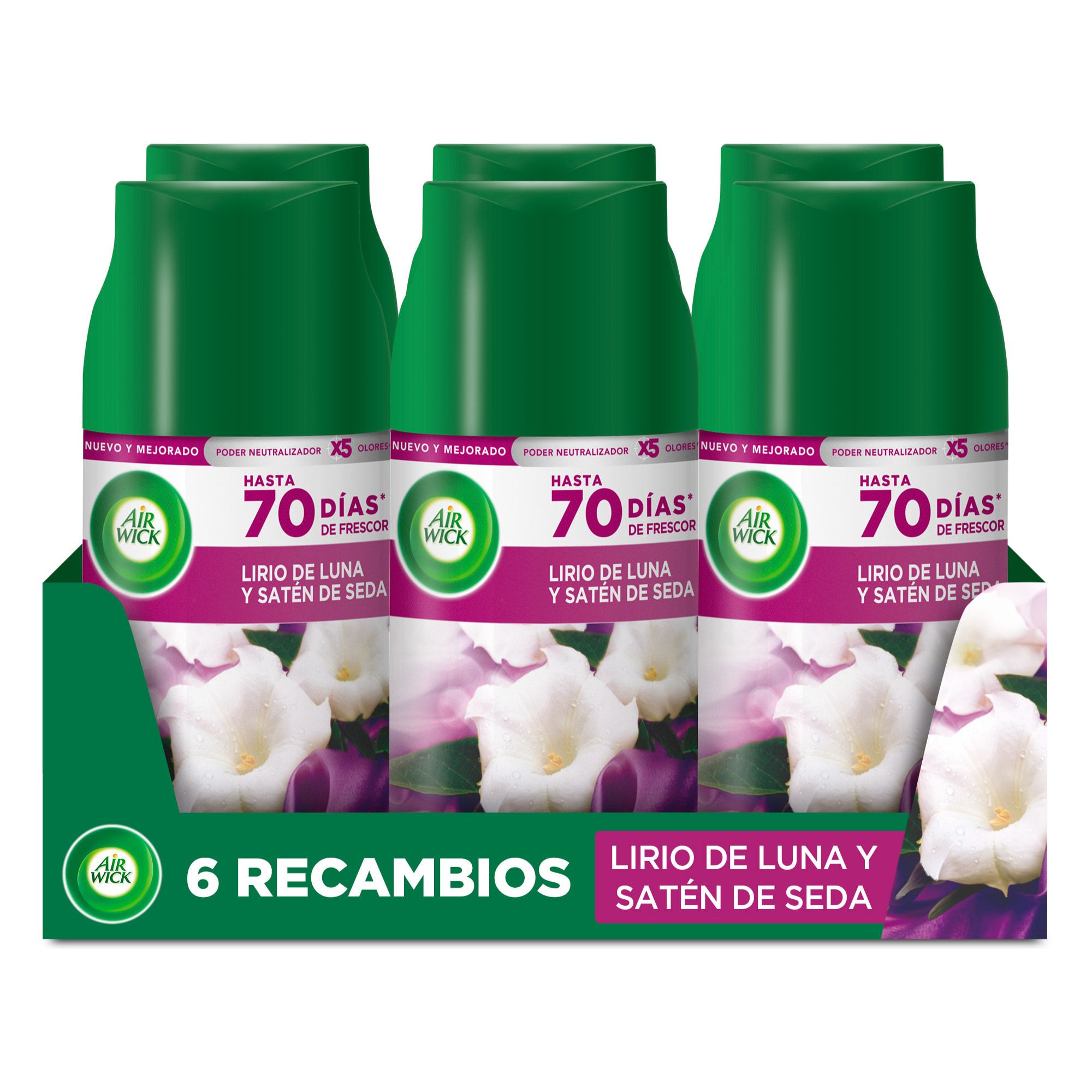 • Air Wick Freshmatic Edición Limitada Viaja desde casa - Ambientador spray automático, esencia para casa con aroma a Flores en el camino (Lirio de Luna y Satén de seda) - 6 Recambios