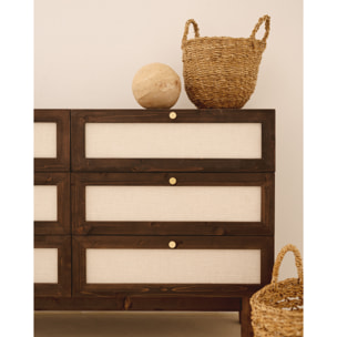 Cómoda elaborada con madera natural de abeto y tejido de lino.