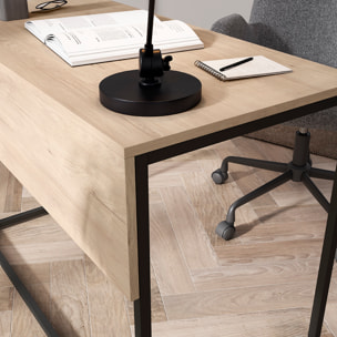 Optimiza tu espacio de trabajo con este escritorio sencillo y funcional, fabricado en melamina de calidad y con robustas patas metálicas. El amplio área principal lo hace ideal para crear tu espacio de estudio o de trabajo. Perfecto para cualquier ambiente, combina diseño y practicidad en un solo mueble.