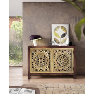 Alacena en madera de mango con puerta correrera, 3 cajones y detalles en metal.