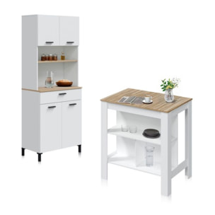 El pack alacena con mesa alta Nitza es un práctico pack para equipar tu cocina con muebles que ofrecen un gran espacio de almacenamiento y organización a la vez que aportan atractivo diseño a tu espacio.