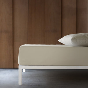 Sábana bajera de algodón 100%, con una densidad de 200 hilos. Teñida de manera que conserva su color con el tiempo y los lavados. Su acabado sanforizado garantiza una suavidad excepcional al tacto. Hecha en España.