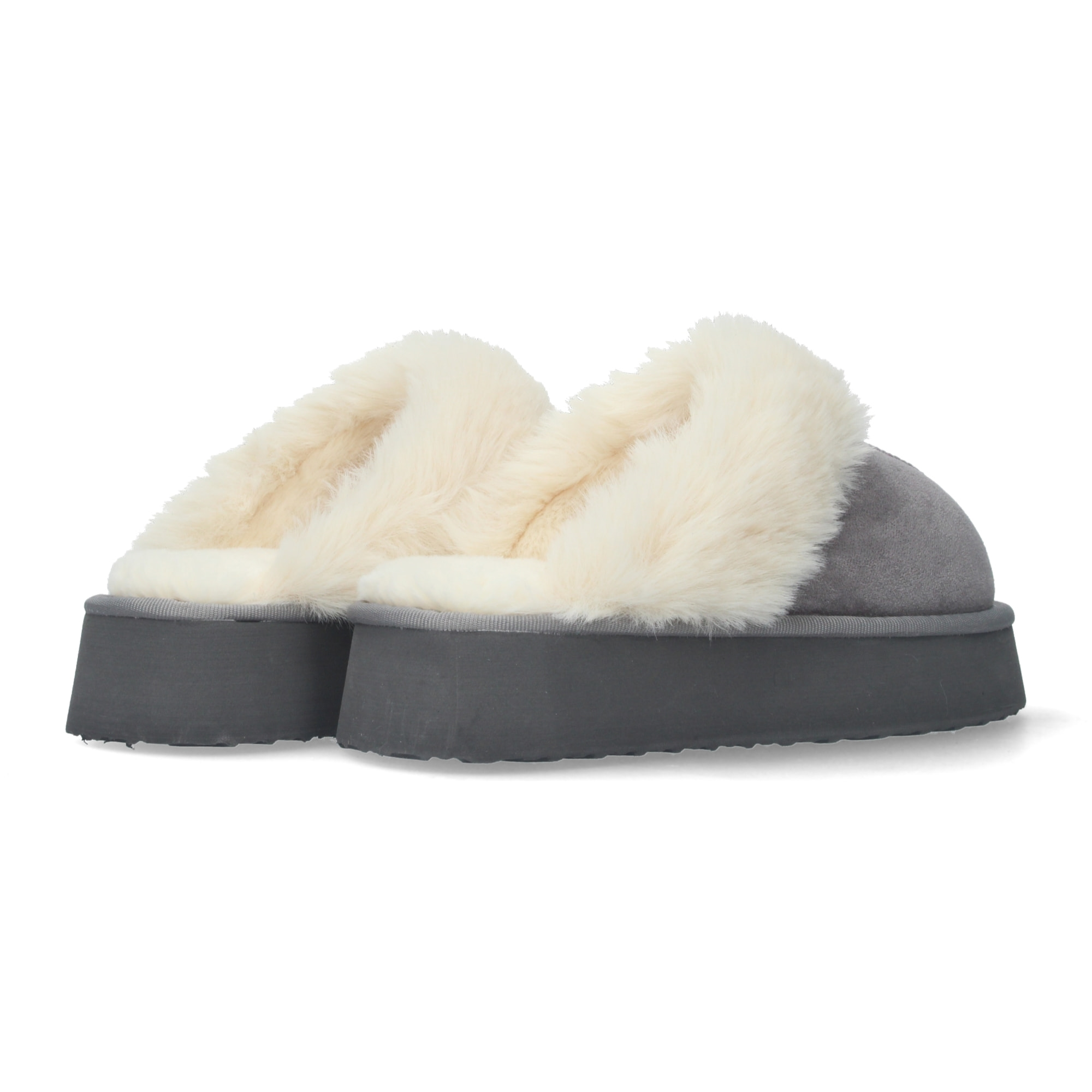 Zapatilla de casa estilo australiano, calidas, forradas de pelo, de plataforma y puntera rendonda.. Altura: 4 cm.