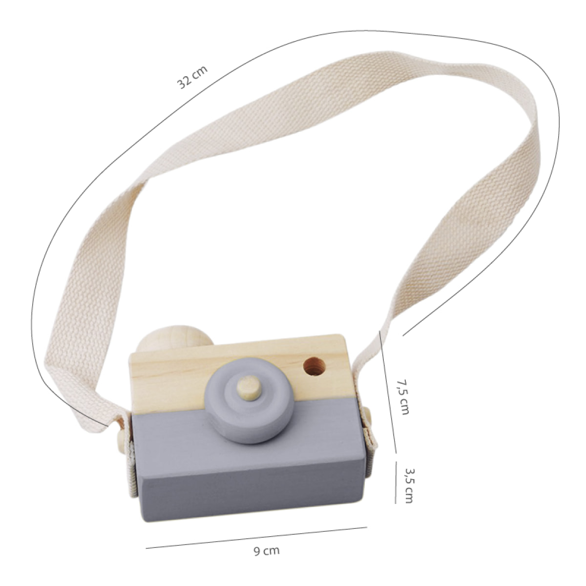 Bonita cámara de fotos de madera para que los pequeños futuros fotógrafos puedan captar aquellos momentos más especiales. Su diseño bicolor con un cordel para colgar en el cuello permite que los más pequeños se la puedan llevar a cualquier parte y, de este modo, el desarrollo de su creatividad e imaginación no conozca límites.