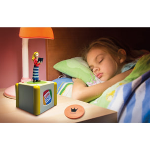 Cuentacuentos de Beatriz Montero está diseñaado especificamente pensando en los niños, para desarrollar su capacidad de escucha y su imaginación, fomentando que se interen por la lectura.El dispositivo contiene una tarjeta microUSB con 50 audiocuentos narrados por Beatriz Montero, sumando en total 4 horas y 50 minutos de contenido. Además, el funcionamiento es muy fácil, solo tienes que colocar la base en el altavoz, encenderlo y seleccionar el cuento que quieres oir.Incluye una figura de Beatriz Montero con 5 bases interactivas para escuchar los distintos tipos de cuentos. Cada base tiene 10 cuentos clasificados segun la temática, cuentos de misterio, risa y broma, populares, animales valientes y bichos raros. También incluye un pequeño libro ilustrado de 25 páginas, con imagen y pequeño párrafo de cada cuento.El audio box incluye una bateria recargable de 3 horas de duración, también incluye un cable usb para su carga. El audio es de gran calidad, permitiendo subir y bajar el volumen y seleccionar el cuento que quieres escuchar.