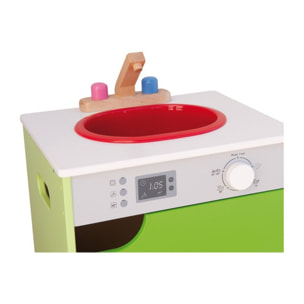 Un fregadero de diseño compacto de gran calidad y resistencia. Tiene un armario para guardar tus cosas y un mando con sonido click.