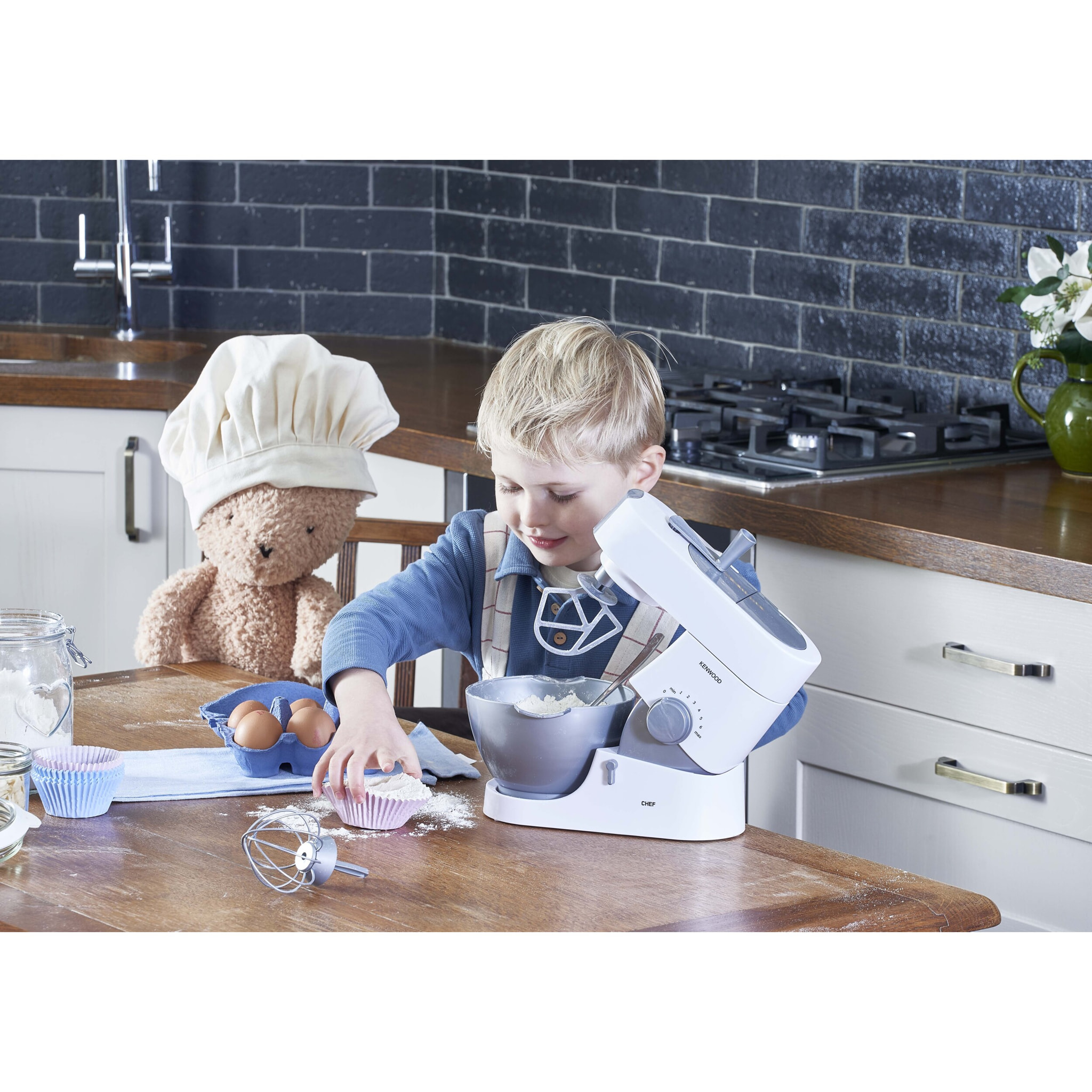 Características principales: Este Robot-batidora puede mezclar masa para panqueques, mezcla para pasteles y glaseado. ¡Al igual que la de verdad! Inspirado en el famoso Kenwood Mixer, este mini-robot funciona y parece real. Perfecto para panaderos en ciernes. Cada botón y pieza móvil permite a los pequeños explorar aún más su imaginación.Incluye: Batidora Kenwood de juguete con motor de dos velocidades, brazo móvil, batidor 'K', batidor y espátula.Se requieren 2 pilas AA.
