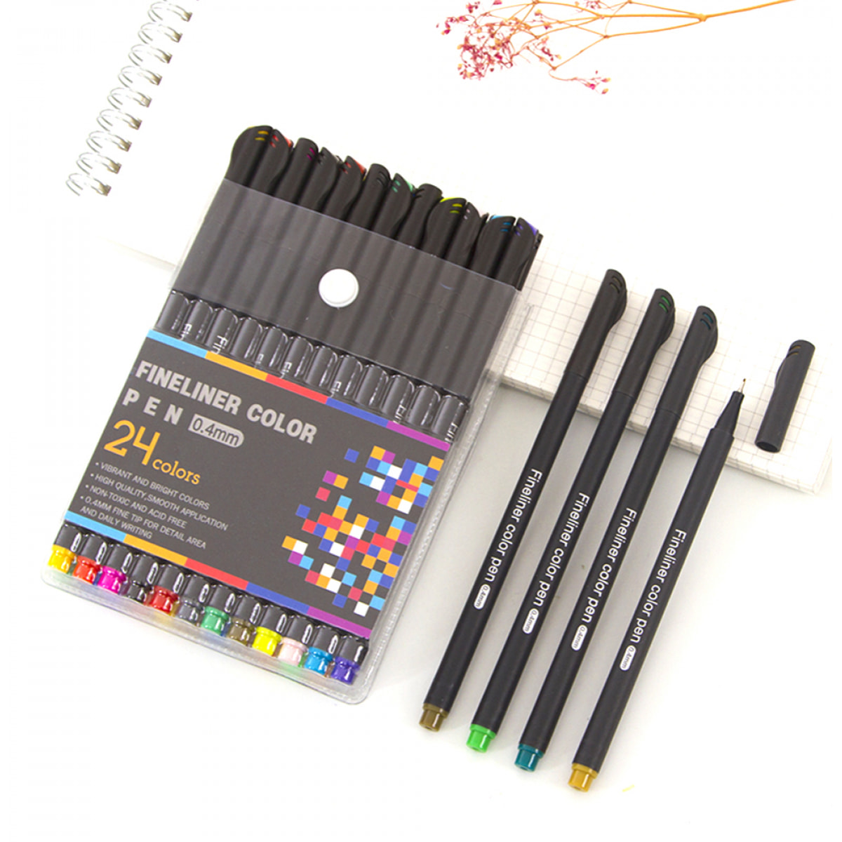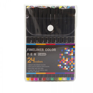 Set 24 Rotuladores COLOR FINELINER profesional punta fina 0,4 mms. Colores definidos y brillantes para delinear, ilustraciones, mandala…