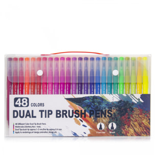 Características principales: Set 48 Rotuladores color doble punta 1-2 mms y fineliner 0,4 mms.